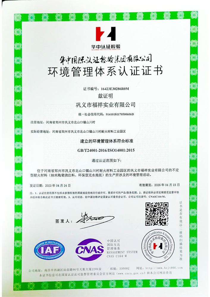 環(huán)境管理體系認(rèn)證證書(shū)