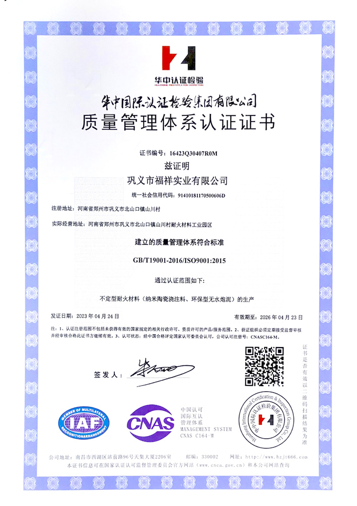 質(zhì)量管理體系認(rèn)證證書(shū)