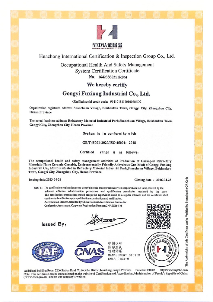 職業(yè)健康安全管理體系認(rèn)證證書(shū)