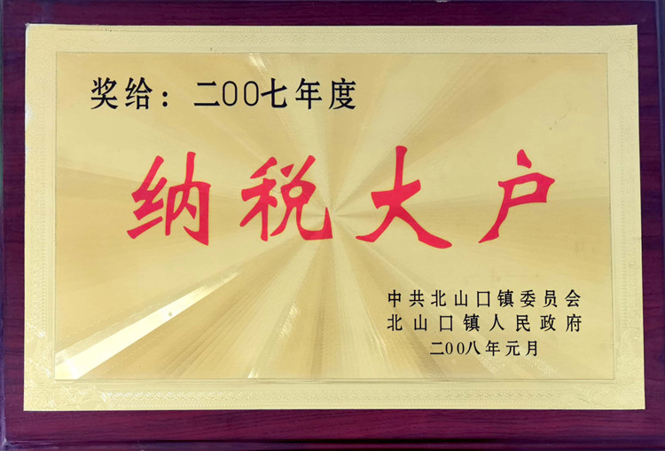 2007納稅大戶證書(shū)